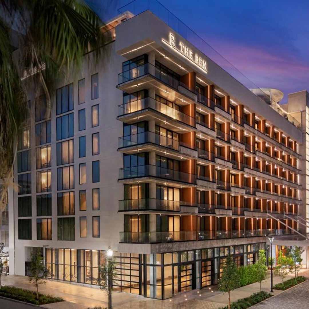 Boutique luxury hotel / rooftop venueA stylish waterfront hotel with rooftop venues and modern event spaces overlooking the Palm Harbor Marina.